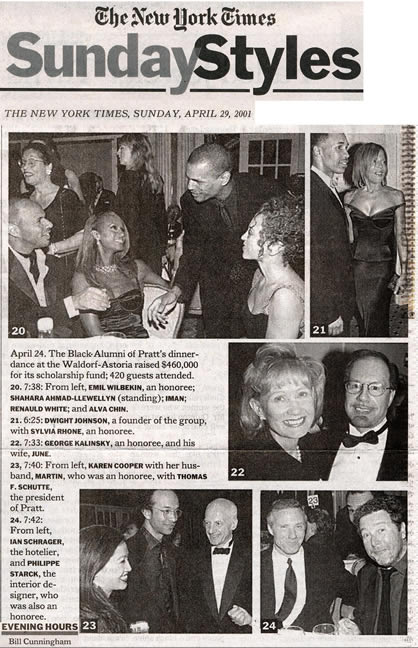 THE CREATIVE SPIRIT AWARD, PRATT INSTITUTE THE NEW YORK TIMES, SUNDAY STYLES, APRIL 29, 2001 BILL CUNNINGHAM, PHOTOGRAPHER